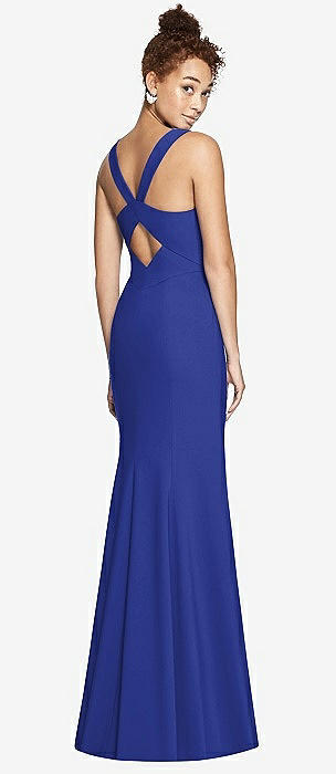Off-the-Shoulder Criss Cross Back Trumpet Gown in cobalt blue