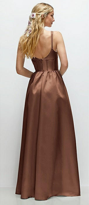 Strapless Bias Cuff Bodice Satin Gown with Pockets in cognac