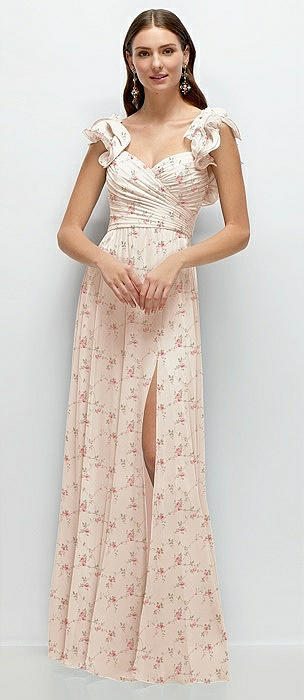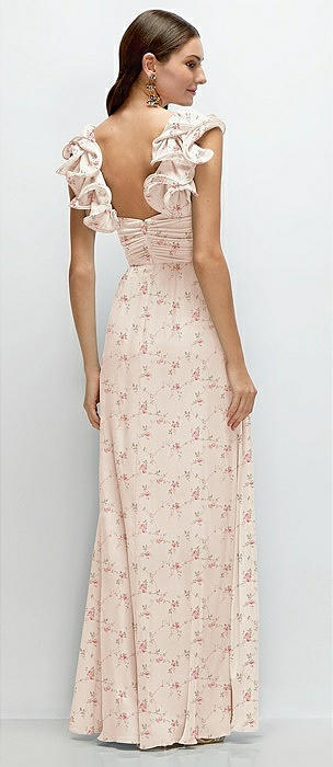 Dramatic Ruffle Edge Strap Chiffon Maxi Dress in coquette floral print