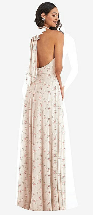 High Neck Halter Backless Maxi Dress in coquette floral print