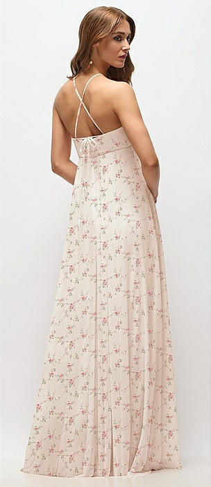 Empire Waist Floral Chiffon Halter Maxi Dress with Convertible Spaghetti Straps in coquette floral print