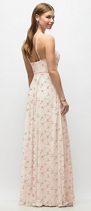 Cowl Neck Chiffon Maxi Dress with Hand-Worked Petal Straps in coquette floral print