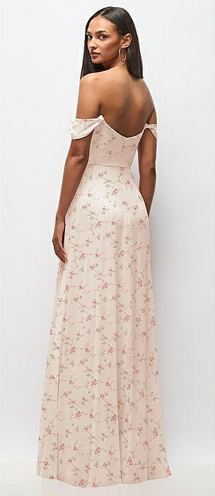 Off-the-Shoulder Draped Neckline Maxi Dress in coquette floral print