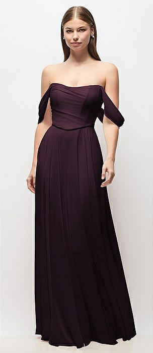 Off-the-Shoulder Basque Corset Chiffon Maxi Dress in deep plum