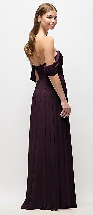 Strapless Chiffon Maxi Dress with Asymmetrical Ruched Drop Waist in deep plum