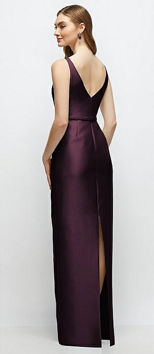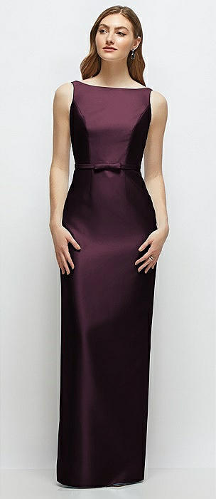 Bateau Neck Satin Column Dress with Bow-Trimmed Skinny Belt