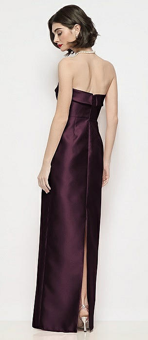 Strapless Cuff Neck Satin Maxi Dress with Column Skirt in deep plum