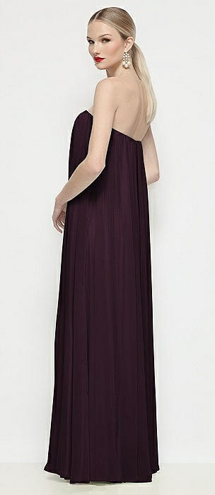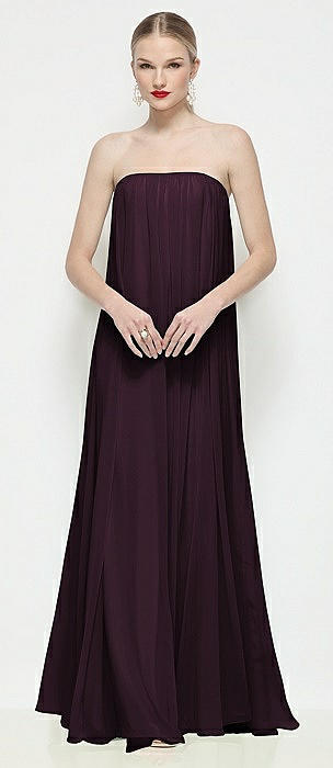 Strapless Shirred Chiffon Trapeze Maxi Dress in deep plum