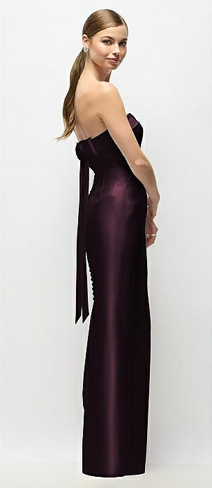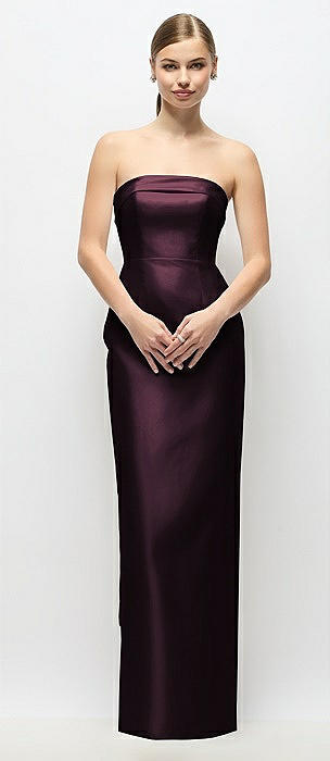 Strapless Cuff Satin Maxi Dress with Column Skirt & Back Bow in deep plum