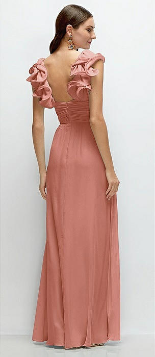 Dramatic Ruffle Edge Strap Chiffon Maxi Dress in desert rose