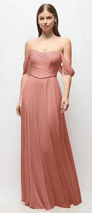 Off-the-Shoulder Basque Corset Chiffon Maxi Dress in desert rose