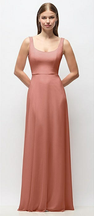 Scoop Neck Tank Strap Chiffon Maxi Dress in desert rose
