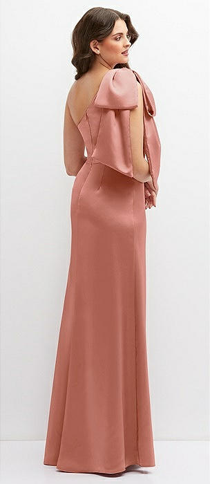 Cascading Bow One-Shoulder Stretch Satin Mermaid Dress with Slight Train in desert rose
