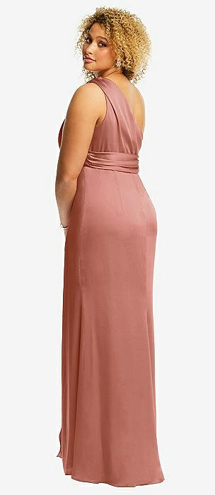 One-Shoulder Draped Twist Empire Waist Trumpet Gown in desert rose