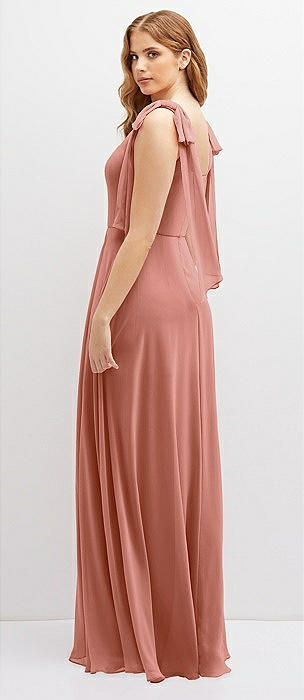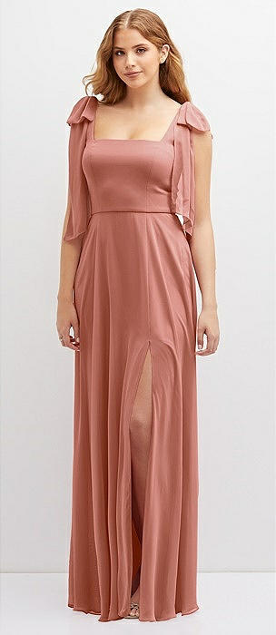 Bow Shoulder Square Neck Chiffon Maxi Dress in desert rose