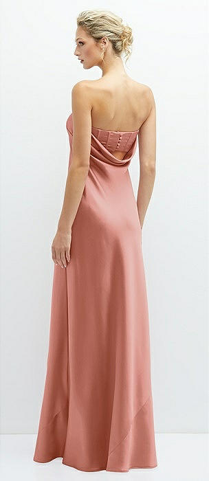 Strapless Topstitched Corset Satin Maxi Dress with Draped Column Skirt in desert rose