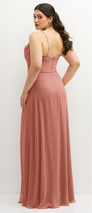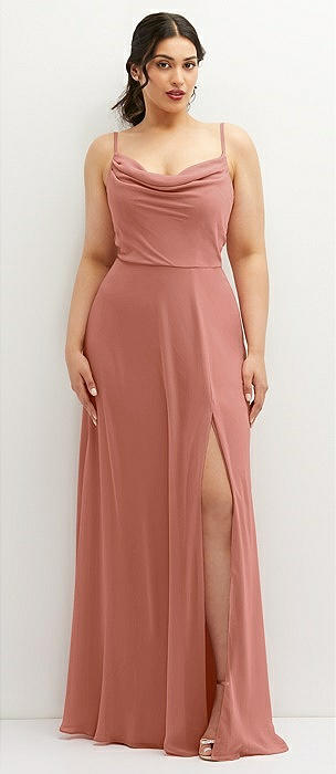 Cowl-Neck A-Line Maxi Dress with Adjustable Straps in desert rose