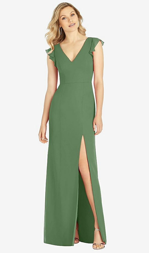 Ruffled Sleeve Mermaid Dress with Front Slit in Vineyard Green