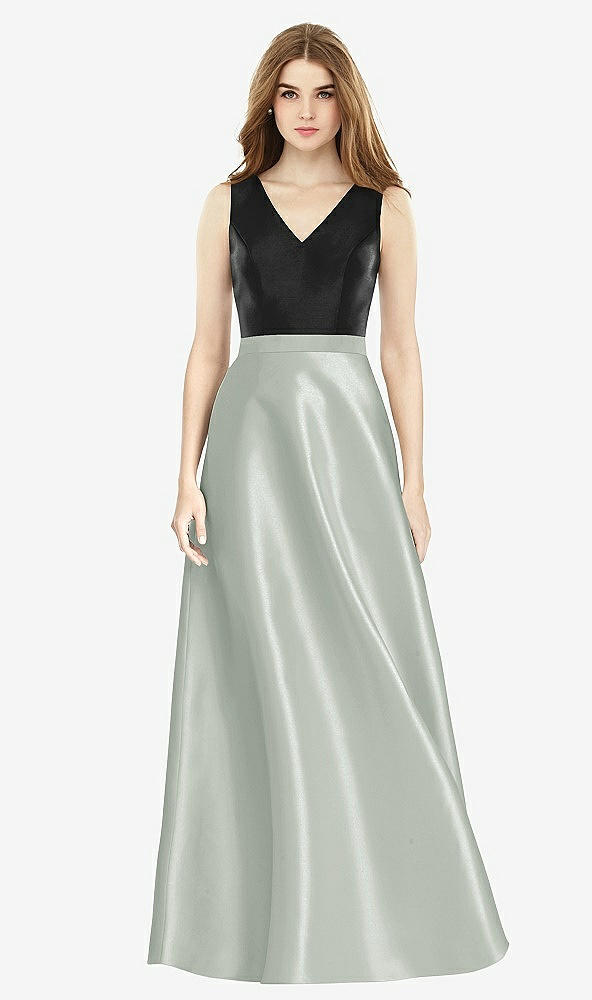 Sleeveless A-Line Satin Dress with Pockets in Willow Green & Black