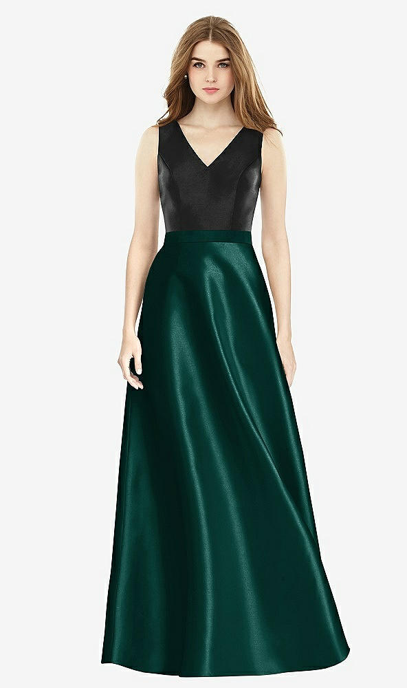 Sleeveless A-Line Satin Dress with Pockets in Evergreen & Black