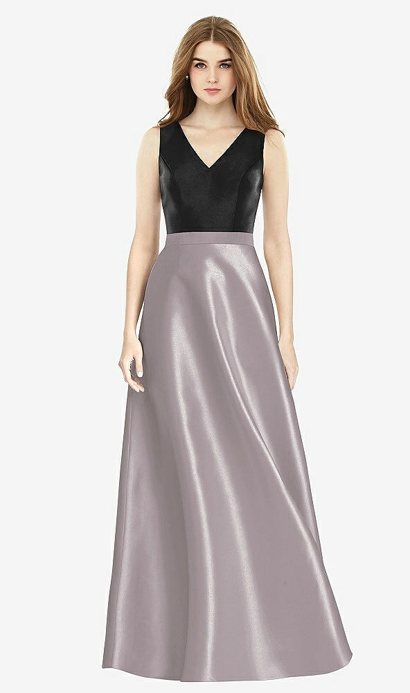 Sleeveless A-Line Satin Dress with Pockets in Cashmere Gray & Black