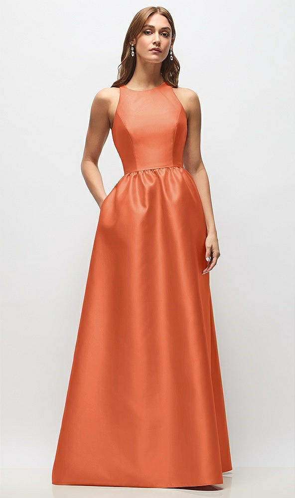 Sleeveless Keyhole Back Satin Maxi Dress in Portofino Orange