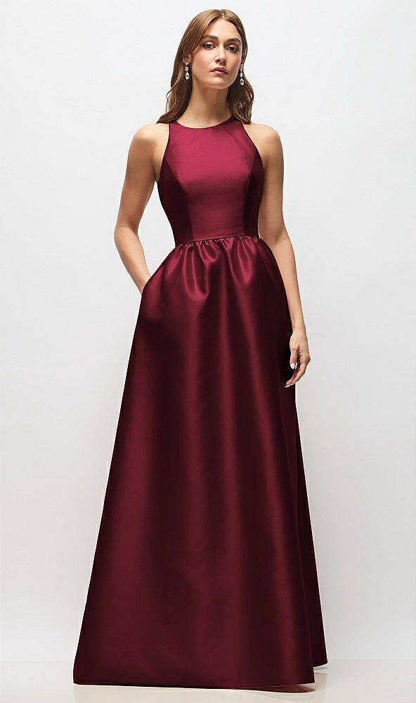 Sleeveless Keyhole Back Satin Maxi Dress in Cabernet