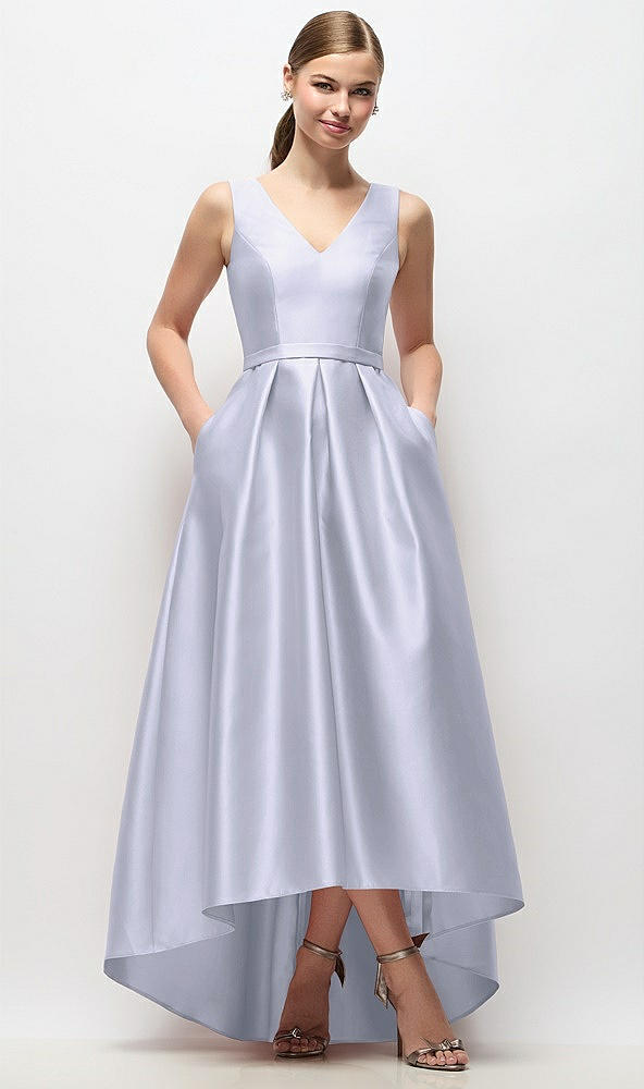 Sleeveless Pleated Skirt High Low Dress with Pockets in Silver Dove