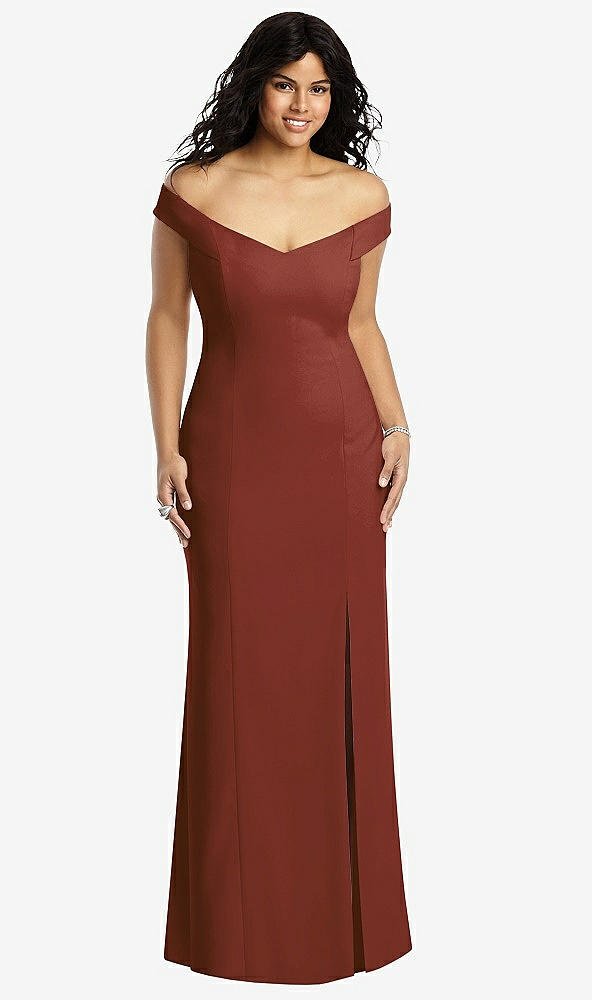 Off-the-Shoulder Criss Cross Back Trumpet Gown in Auburn Moon