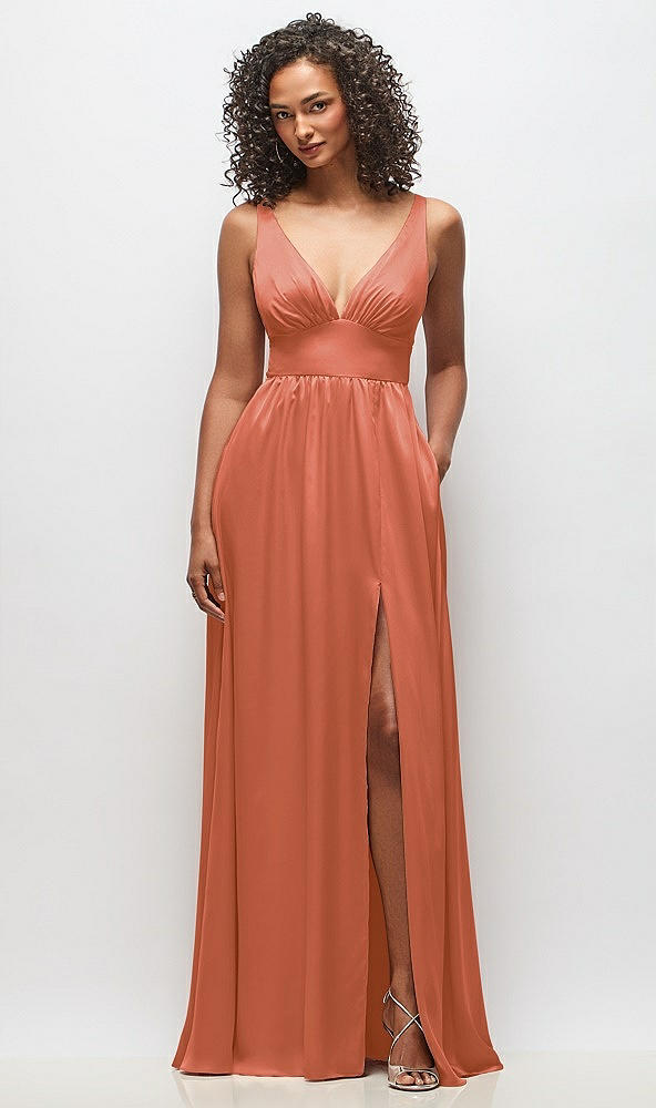 Deep V-Neck Shirred Skirt Maxi Dress with Convertible Straps in Terracotta Copper