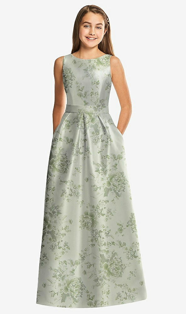 Floral Bateau Neck Maxi Junior Bridesmaid Dress with Pockets in Sage Cottage Rose