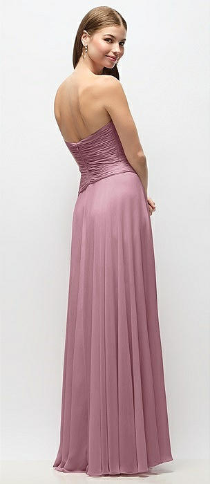Strapless Pleated Surplice Chiffon Maxi Dress with A-Line Skirt in dusty pink