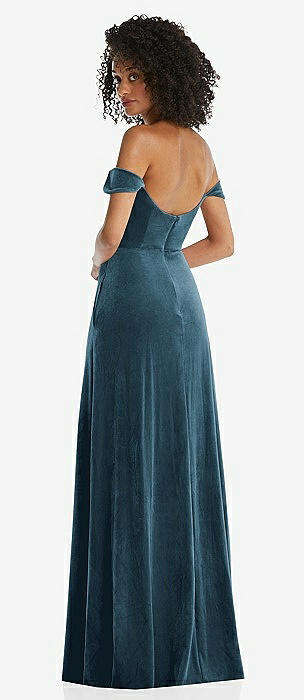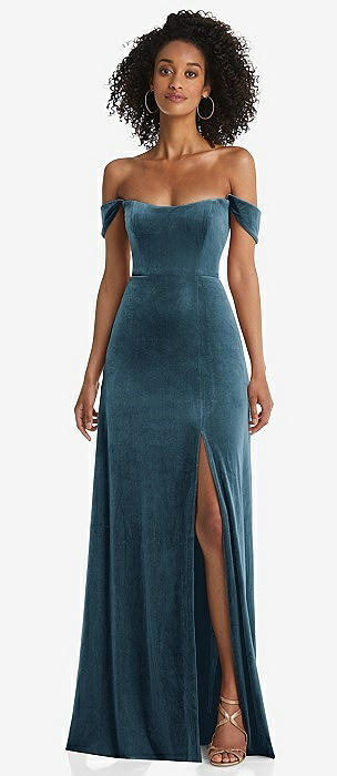 Off-the-Shoulder Flounce Sleeve Velvet Maxi Dress in dutch blue