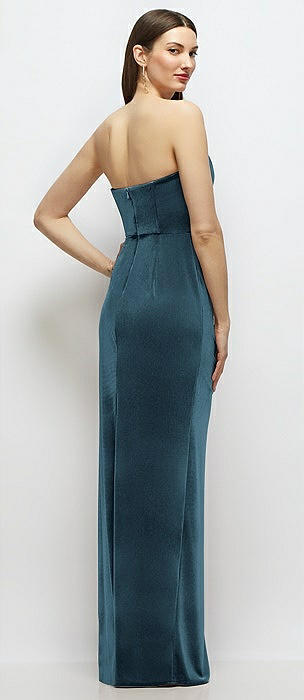 Strapless Corset Bodice Velvet Column Maxi Dress in dutch blue