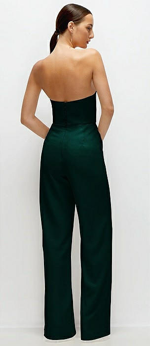 Strapless Cat-Eye Corset Crepe Wedding Jumpsuit in evergreen