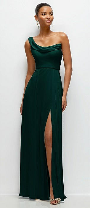 Chiffon One-Shoulder Maxi Dress with Draped Cowl Neckline in evergreen