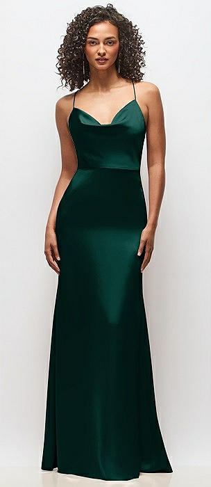 Cowl-Neck Criss Cross Back Slip Dress in evergreen
