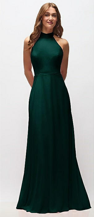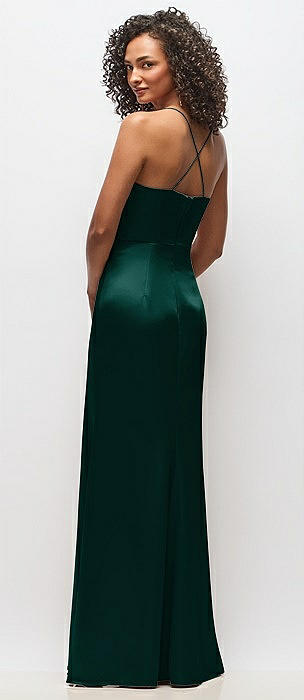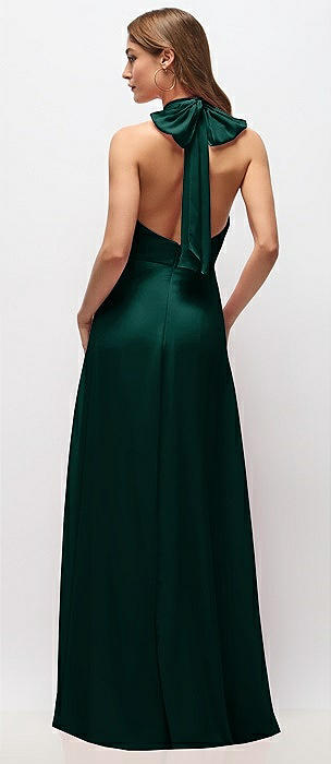 Draped Scarf Halter Open-Back Stretch Satin Bias Maxi Dress with Adjustable Straps in evergreen