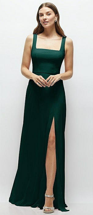 Square-Neck Satin Maxi Dress with Full Skirt in evergreen