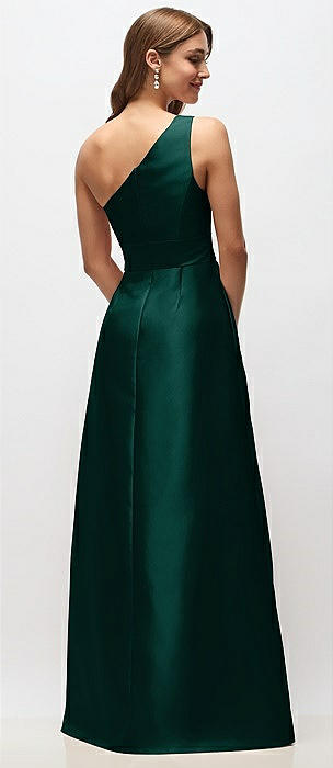 Bow One-Shoulder Full A-Line Satin Maxi Dress in evergreen
