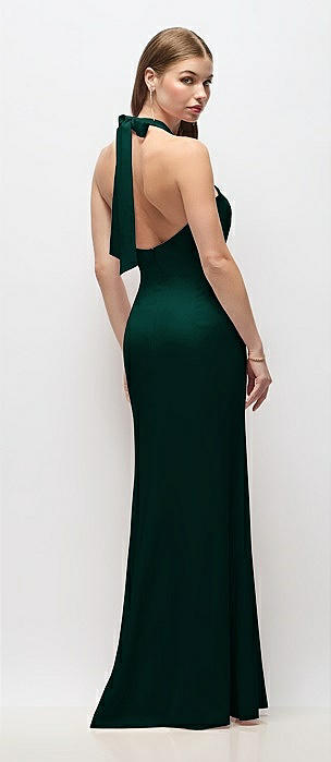 Tie Halter Open Back Trumpet Gown in evergreen