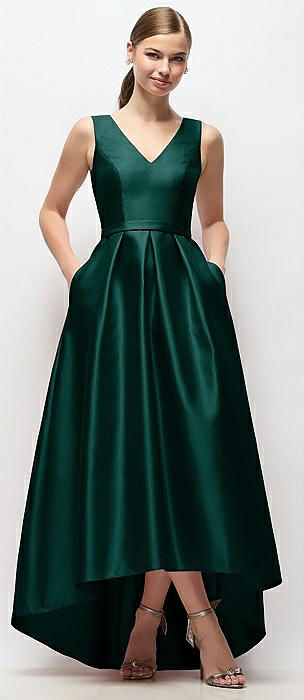 Sleeveless Pleated Skirt High Low Dress with Pockets in evergreen