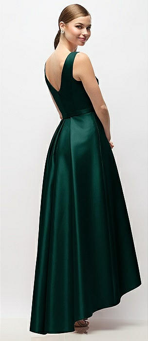 Strapless Bias Cuff Bodice Satin Gown with Pockets in evergreen