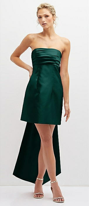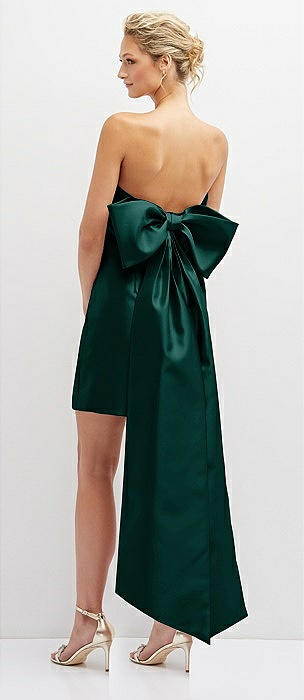 Strapless Satin Column Mini Dress with Oversized Bow in evergreen