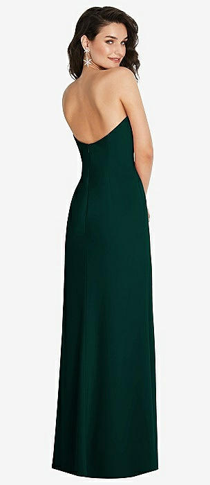 Strapless Scoop Back Maxi Dress with Front Slit in evergreen