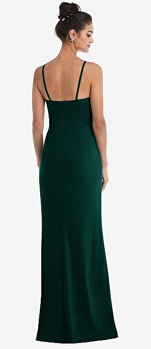 Cowl-Neck Wide Strap Crepe Trumpet Gown with Front Slit in evergreen