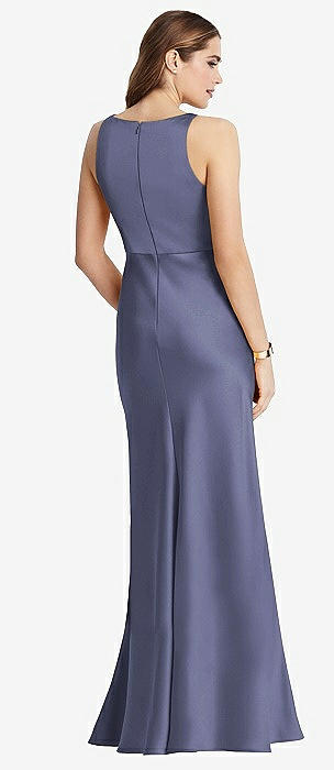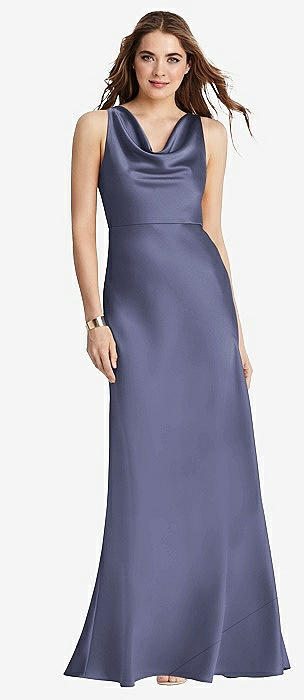 Cowl-Neck Open Tie-Back Stretch Satin Mermaid Dress with Slight Train in french blue
