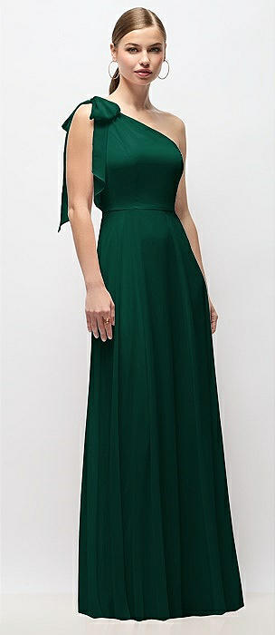 Chiffon One-Shoulder Maxi Dress with Circle Skirt in hunter green
