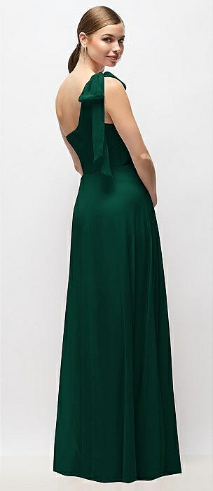 Bow One-Shoulder Full A-Line Satin Maxi Dress in hunter green