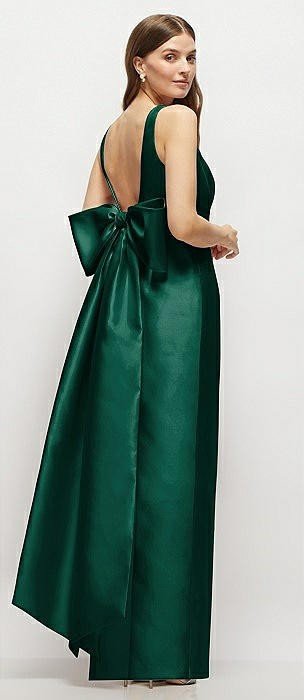 Strapless Satin Column Maxi Dress with Oversized Handcrafted Bow in hunter green